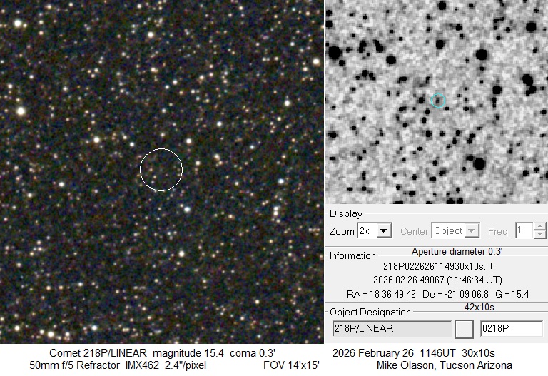 Pictures of 218P/LINEAR (2026)