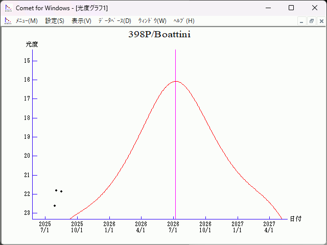 Perturbed ephemeris below is based on elements from MPEC 2021-L04. Epoch (TT/JD) T (TT/JD) Peri. Node Incl. 2461240.50000 2461229.4535220 320.30661 127.40674 11.02842 e q a Epoch (TT) 0.5837824 1.3000703 3.12354 2026/07/19.00
