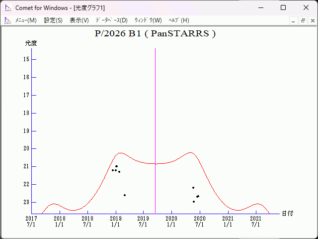 Epoch = 2019 Oct. 4.0 TT T = 2019 Sept.16.71137 TT Peri. = 69.87947 e = 0.3400392 Node = 106.62532 2000.0 q = 2.3497080 AU Incl. = 4.09227 a = 3.5603753 AU n = 0.14671023 P = 6.72 years