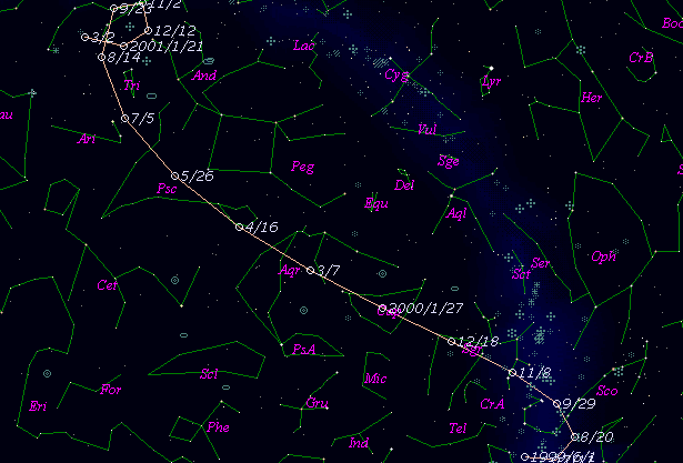 >From 71 observations 1964-1993, mean residual 0".84. Nongravitational
