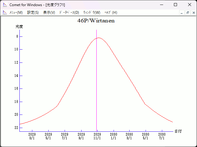 m1 = 8.0 + 5 log d + 27 log r(t - 12) [-150, 180] (2029 May 30 - 2030 Apr. 25)