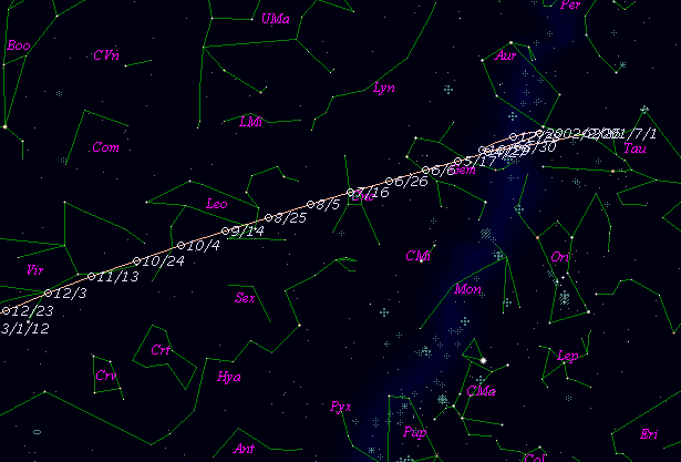 m1 = 9.3 + 5 log d + 10.0 log r [ , 0] ( - 2003 Jan. 21)