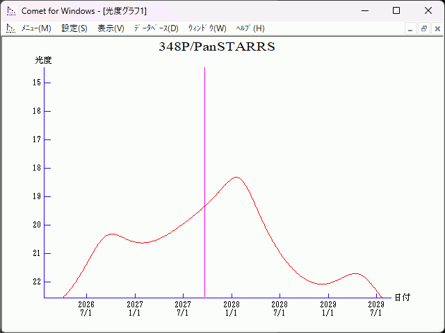 Perturbed ephemeris below is based on elements from MPEC 2022-ED3. Epoch (TT/JD) T (TT/JD) Peri. Node Incl. 2461680.50000 2461668.0620669 135.89731 312.90753 17.74483 e q a Epoch (TT) 0.3073219 2.1816104 3.14953 2027/10/02.00