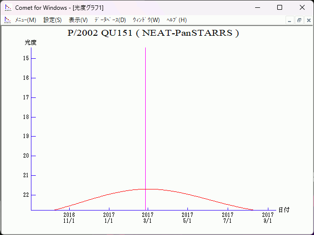 Epoch = 2017 Feb. 16.0 TT T = 2017 Feb. 25.12006 TT Peri. = 1.29960 e = 0.5495924 Node = 324.15045 2000.0 q = 1.6834277 AU Incl. = 11.35621 a = 3.7375655 AU n = 0.13640204 P = 7.23 years