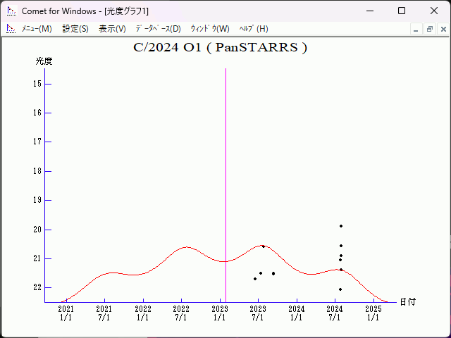 Epoch 2024 Oct. 17.0 TT = JDT 2460600.5 T 2023 Jan. 28.99496 TT Rudenko q 6.6081594 (2000.0) P Q z -0.0001926 Peri. 349.92414 +0.46594233 +0.51890317 +/-0.0000064 Node 303.33541 -0.74034162 -0.21493626 e 1.0012729 Incl. 59.07319 -0.48455344 +0.82737047 >From 34 observations 2023 June 18-2024 Aug. 1, mean residual 0".2.