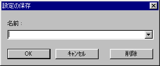 設定を保存するには、メニューの「設定」−「設定の保存」を選んで、「設定の保存」ダイアログを開きます。