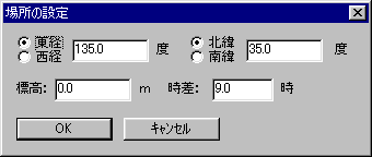 まず、メニューの「設定」−「場所」を選び、観測地の経緯度などを設定しておきます。